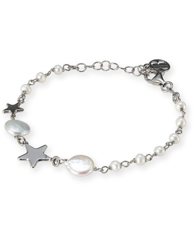 Boccadamo Bracciale Argento Rodiato con Stelle e Perle BR560