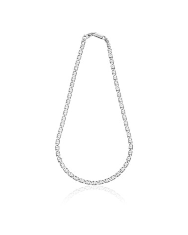 - Collana uomo in argento rodiato, catena occhio di pernice. Chiusura a moschettone e targhetta con logo. Misura 55,00 cm. Un gioiello in argento dalla linea essenziale e grintosa per aggiungere un tocco dal carattere deciso ed originale ad ogni tuo outfit. Indossala con camicie o t-shirt sia in occasioni casual che eleganti e completa il look con il bracciale coordinato.