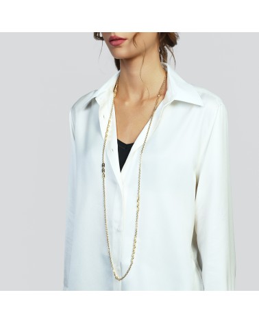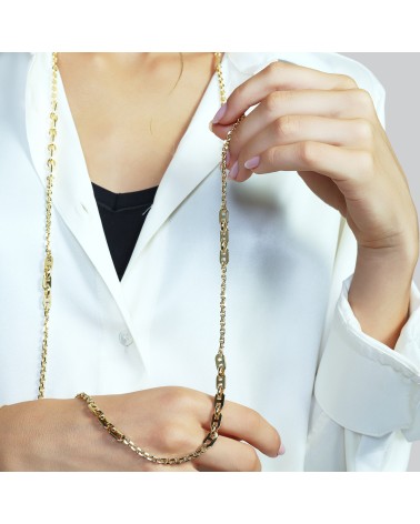 Collana lunga in catena placcata oro, maglia traversino. Misura 113,00 cm. Essenziale, elegante, questa collana lunga da donna è l'unione perfetta tra semplicità e carattere deciso. L'accessorio ideale per chi cerca un look raffinato e minimal. Il design è pulito e versatile per valorizzare ogni outfit. Perfetta da sola o abbinata a bracciale e orecchini coordinati o mixata ad altre collane per un sofisticato effetto layering. Scegli questa collana Unoaerre, fai un regalo speciale a te stessa o a chi vuoi.