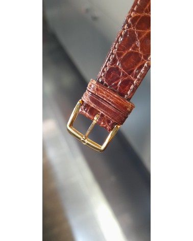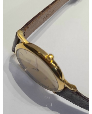 Orologio donna al quarzo, cassa in oro 18 kt, cinturino in pelle con fibbia laminata oro.