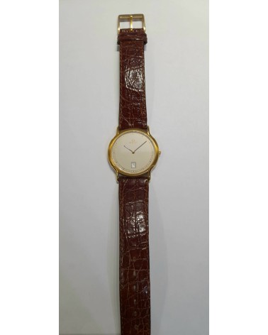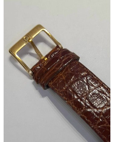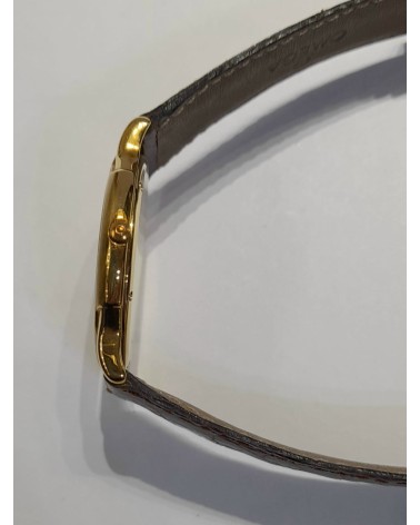 Orologio unisex al quarzo, cassa in oro 18 kt, cinturino in pelle marrone con fibbia in oro giallo, quadrante beige.