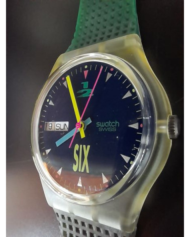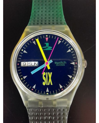 Osservazione generale sugli Swatch vintage: gli orologi Swatch che vendiamo provengono da collezioni private e qui presentati anche come oggetti da collezione. Ogni Swatch che vendiamo verifichiamo la funzionalità e la batteria è nuova. Le collezioni sono state raccolte durante gli anni '80 e '90. Dopo l'acquisto gli orologi sono stati conservati fino ad ora e mai indossati.