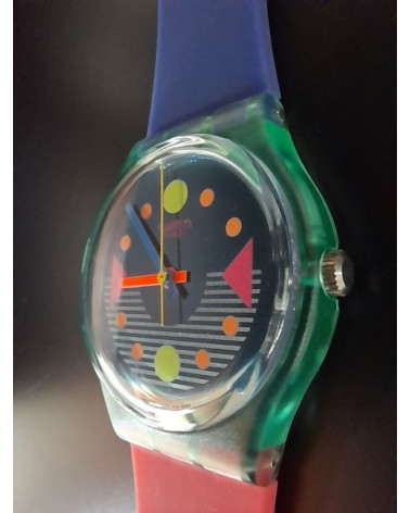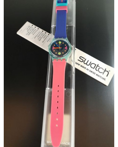 Osservazione generale sugli Swatch vintage: gli orologi Swatch che vendiamo provengono da collezioni private e qui presentati anche come oggetti da collezione. Ogni Swatch che vendiamo verifichiamo la funzionalità e la batteria è nuova. Le collezioni sono state raccolte durante gli anni '80 e '90. Dopo l'acquisto gli orologi sono stati conservati fino ad ora e mai indossati.