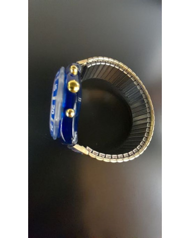 Orologio quarzo,bracciale elasticizzato acciaio con laminatura color oro, quadrante multicolor.