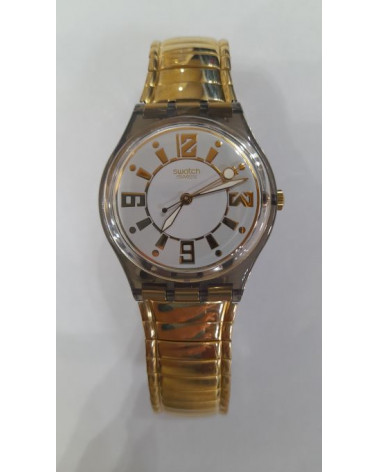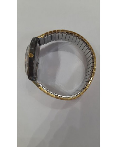 Orologio quarzo, cinturino elasticizzato acciaio,quadrante color bianco con indici color oro.