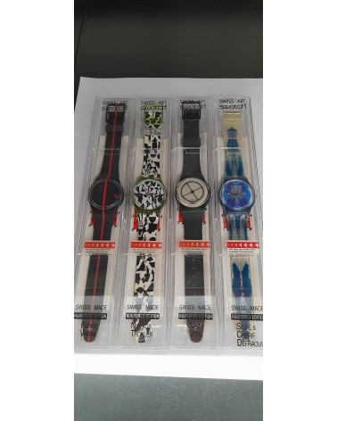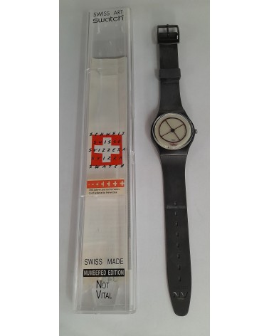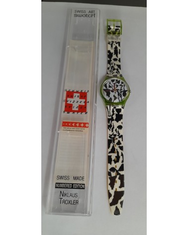 Osservazione generale sugli Swatch vintage: gli orologi Swatch che vendiamo provengono da collezioni private e qui presentati anche come oggetti da collezione. Ogni Swatch che vendiamo verifichiamo la funzionalità e la batteria è nuova. Le collezioni sono state raccolte durante gli anni '80 e '90. Dopo l'acquisto gli orologi sono stati conservati fino ad ora e mai indossati.