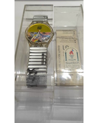 Osservazione generale sugli Swatch vintage: gli orologi Swatch che vendiamo provengono da collezioni private e qui presentati anche come oggetti da collezione. Ogni Swatch che vendiamo verifichiamo la funzionalità e la batteria è nuova. Le collezioni sono state raccolte durante gli anni '80 e '90. Dopo l'acquisto gli orologi sono stati conservati fino ad ora e mai indossati.