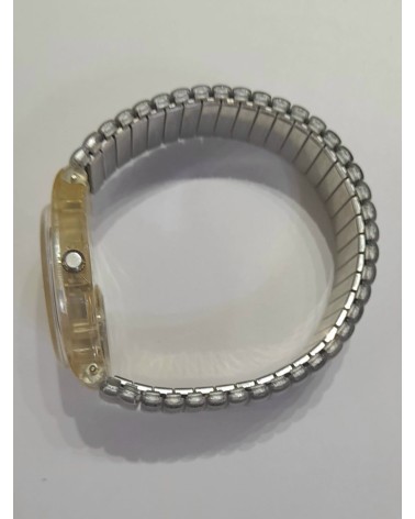 Orologio al quarzo,bracciale elasticizzato in acciaio e plastica, quadrante fantasia.