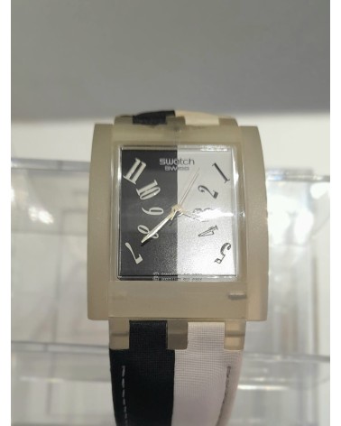 Osservazione generale sugli Swatch vintage: gli orologi Swatch che vendiamo provengono da collezioni private e qui presentati anche come oggetti da collezione. Ogni Swatch che vendiamo verifichiamo la funzionalità e la batteria è nuova. Le collezioni sono state raccolte durante gli anni '80 e '90. Dopo l'acquisto gli orologi sono stati conservati fino ad ora e mai indossati.