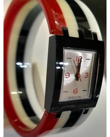 Osservazione generale sugli Swatch vintage: gli orologi Swatch che vendiamo provengono da collezioni private e qui presentati anche come oggetti da collezione. Ogni Swatch che vendiamo verifichiamo la funzionalità e la batteria è nuova. Le collezioni sono state raccolte durante gli anni '80 e '90. Dopo l'acquisto gli orologi sono stati conservati fino ad ora e mai indossati.