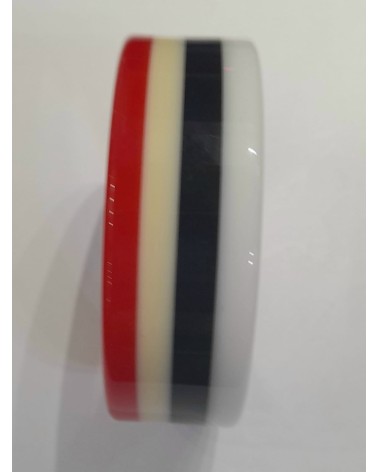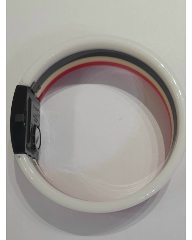Orologio al quarzo, bracciale in plastica con strisce colorate, realizzato a cerchio chiuso senza fibbia, quadrante beige