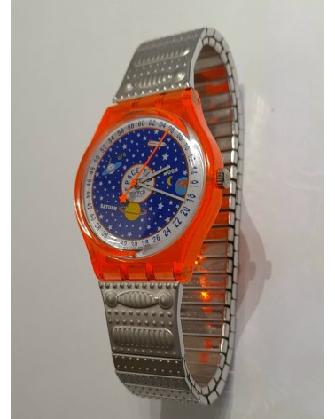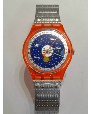 Osservazione generale sugli Swatch vintage: gli orologi Swatch che vendiamo provengono da collezioni private e qui presentati anche come oggetti da collezione. Ogni Swatch che vendiamo verifichiamo la funzionalità e la batteria è nuova. Le collezioni sono state raccolte durante gli anni '80 e '90. Dopo l'acquisto gli orologi sono stati conservati fino ad ora e mai indossati.