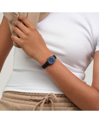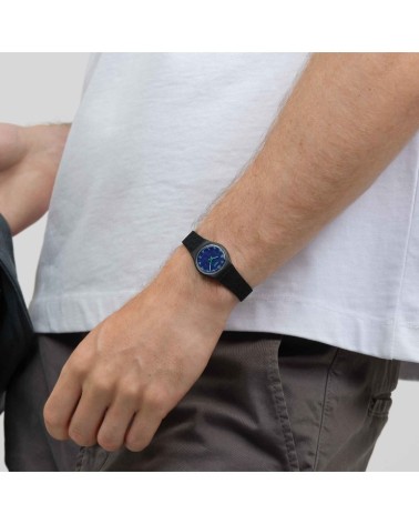 Orologio al quarzo, quadrante blu testurizzato, cinturino silicone testurizzato nero opaco.