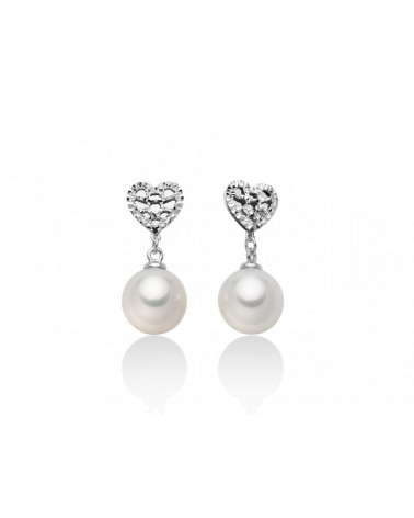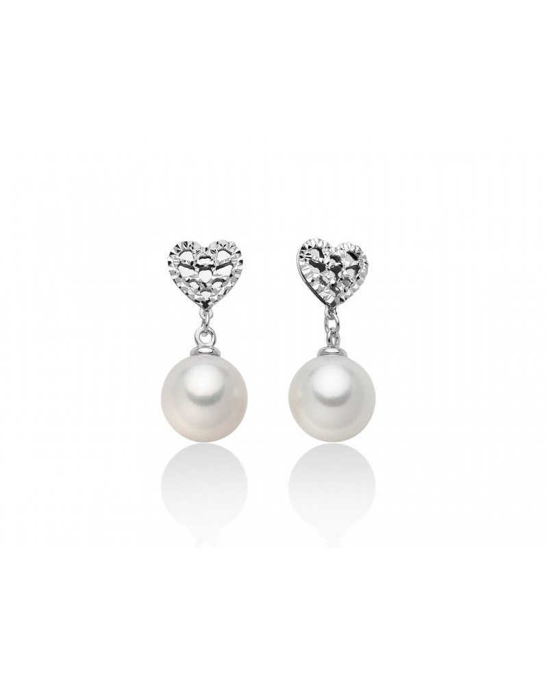 Orecchini perle della collezione Miluna Le Perle, con cuoricini in oro bianco 18kt.