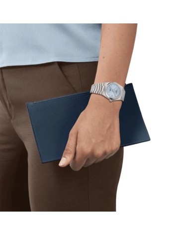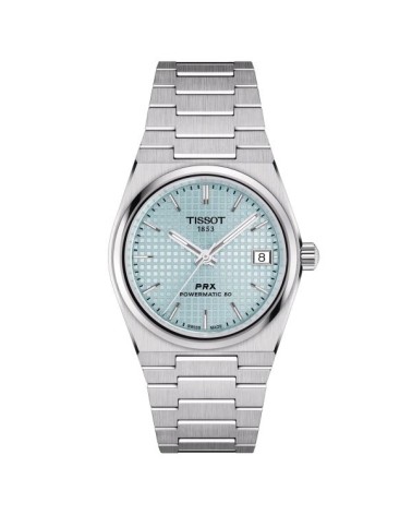 Il Tissot PRX 35mm Powermatic 80, l'estetica senza tempo incontra la tecnologia contemporanea. Questo orologio da 35 mm presenta una cassa in acciaio di alta qualità e un vivace quadrante blu ghiaccio. Il caratteristico design del quadrante con lavorazione waffle aggiunge una raffinatezza unica a questo modello automatico. Dotato di una resistenza all'acqua fino a 100 metri e di una spirale Nivachron™, il PRX blu ghiaccio è una scelta unica per gli appassionati di orologi pratici ed eleganti. Il bracciale in acciaio satinato, completo di chiusura déployante a tripla lama in acciaio, assicura un confort impeccabile.