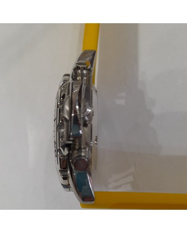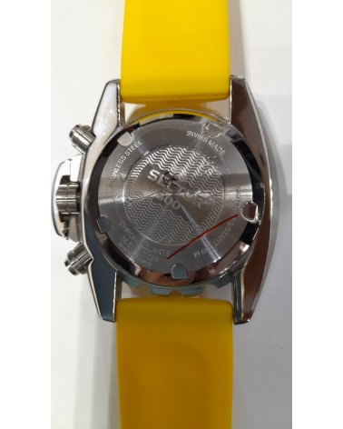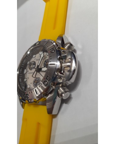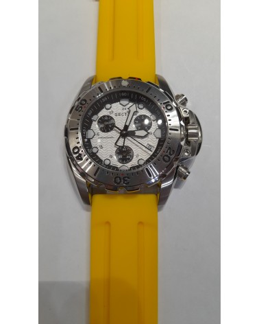 Orologio da uomo al quarzo, cassa in acciaio, cinturino in caucciù giallo, quadrante silver con datario.