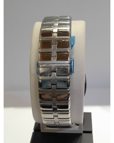 Orologio rettangolare unisex solotempo al quarzo, cassa e bracciale in acciaio, quadrante nero con datario.