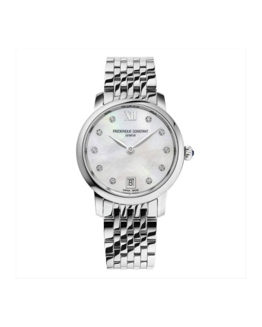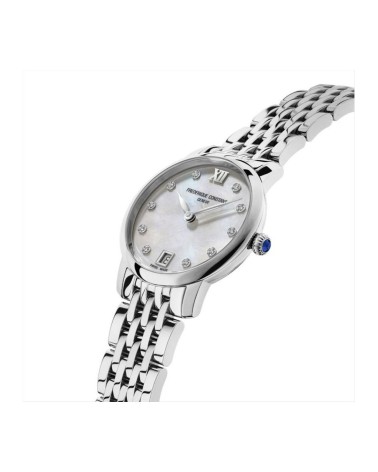 L’orologio Slimline Ladies dal fine diametro di 30 mm racchiude l’essenza di Frederique Constant. Grazie al gioco di diamanti, questo segnatempo spicca per grazia ed eleganza.