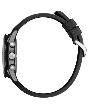 Cinturino nero in gomma morbida con fibbia ardiglione. WR 10 bar.