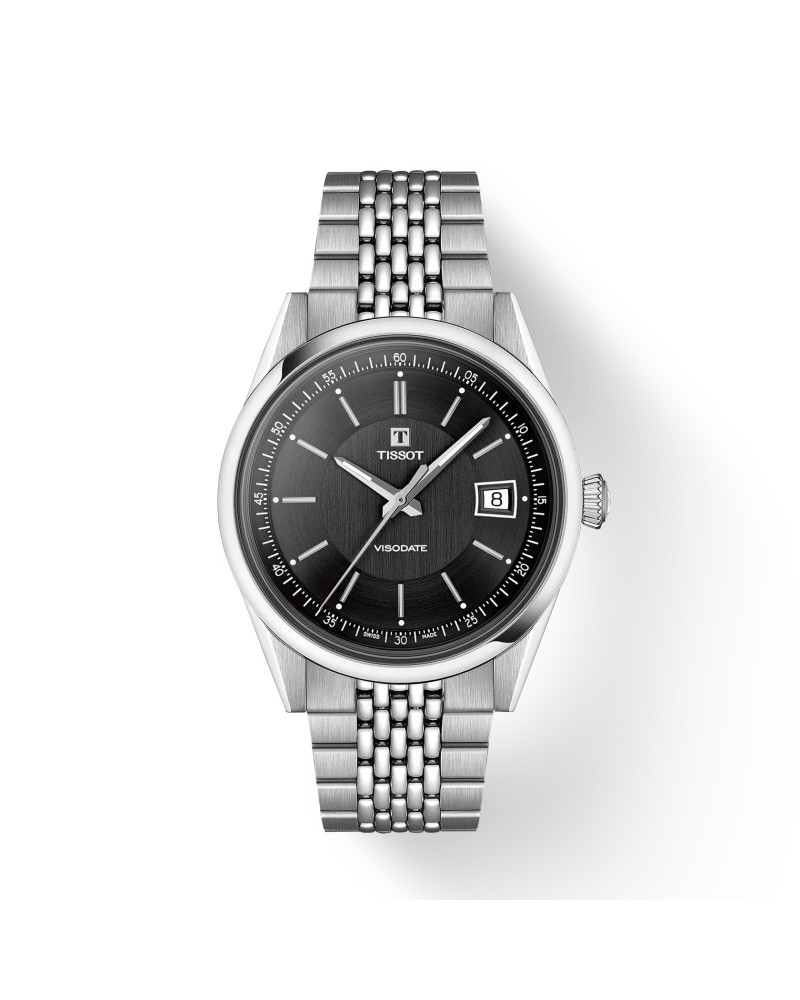 Il Tissot Visodate torna in una nuova versione con cassa da 39 mm. Questo modello rappresenta una naturale evoluzione della sua tradizione: un orologio automatico affidabile e senza tempo, progettato per accompagnare la quotidianità con lo stesso spirito autentico che lo ha reso iconico nel corso delle generazioni. Il fondello a vista rivela la raffinata meccanica del movimento automatico Powermatic 80, che offre fino a 80 ore di autonomia. Le lancette Dauphine con trattamento Super-LumiNova® garantiscono un’ottima leggibilità anche in ambienti poco illuminati. Scopri questa versione con quadrante nero, abbinata a un bracciale in acciaio inox “grani di riso” con sgancio rapido, per uno stile pulito, contemporaneo ed elegante.